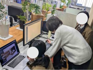 2日間のプログラムでは、スタッフによる設計実務のエピソードやキャリアについてのトークを行ったほか、3D住宅デザインソフトを使用して実際の店舗プロジェクトをモデルにした色彩計画案の作成にも挑戦していただきました。